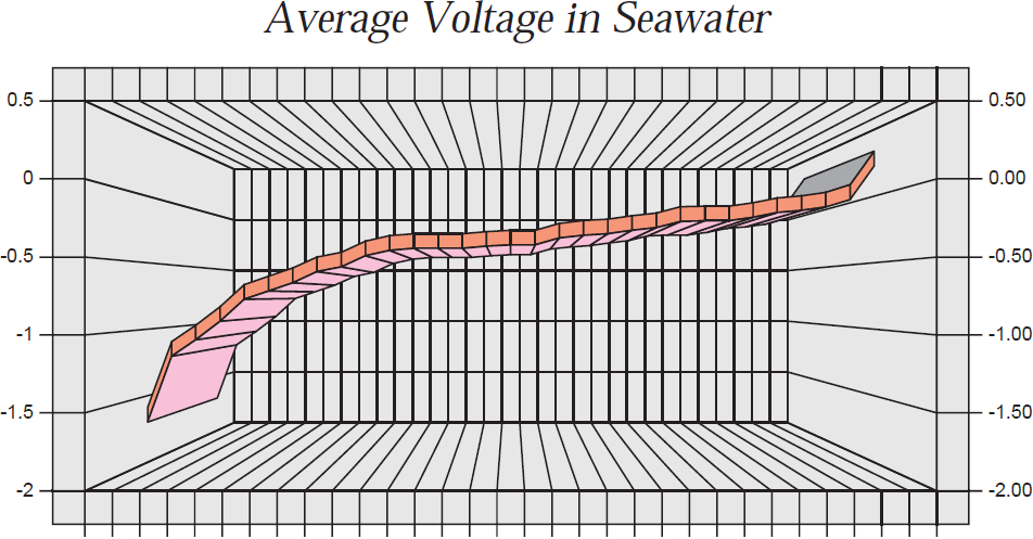 Description: Here is a standard display showing a galvanic series, as a 2D horizontal chart. The goal of the display is to be able to corrosion potential due to the difference in galvanic activity when two metals are combined. Thus, what is important to see is how far apart two metals are in the ordered series. Note that: